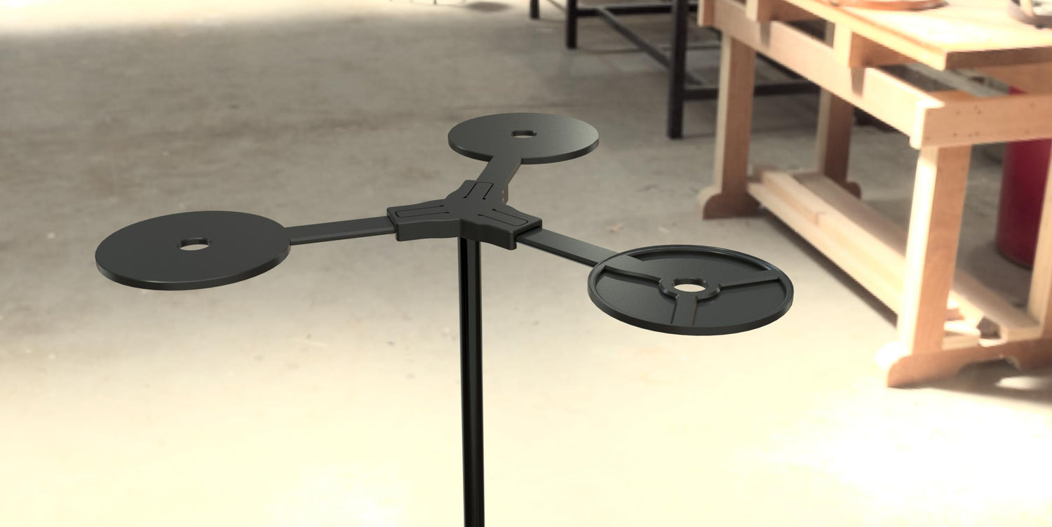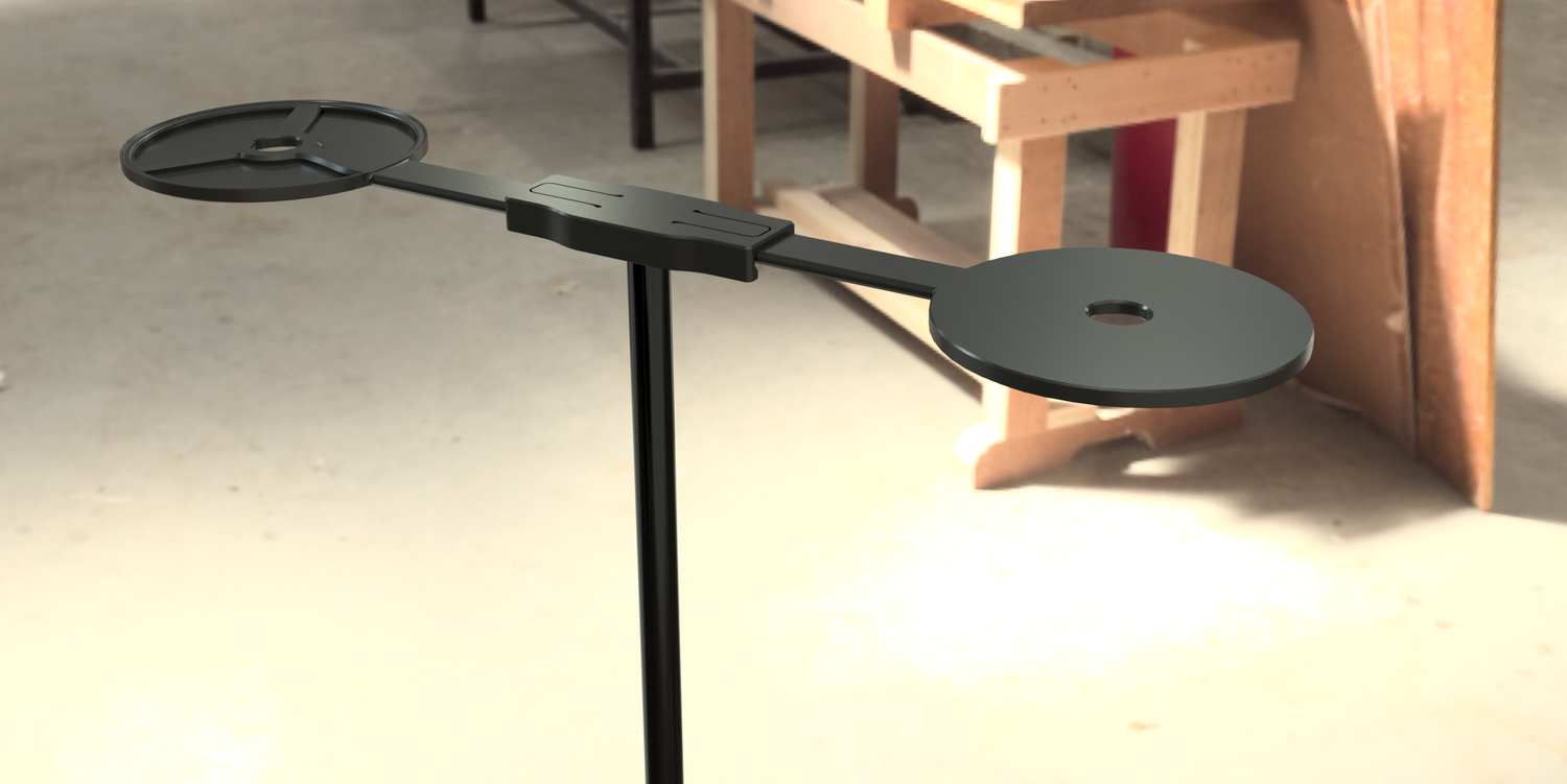 This new tornado wand design is available with your choice of configurations for one, two or three tornado wands. The wand holders each have a standard 1/4 20 photo tripod threaded mount. The wand holders also fit standard light stand tripods that have the 1/4 20 thread. The wands have disks that are 150mm in diameter, or just shy of six inches with a center hole size of 25mm or just shy of one inch. Each wand is held securely in its holder with a simple but effective retention system. Each wand comes with two reducers which fit the center hole and reduce the center hole diameter to 10 or 15mm depending on which reducer you choose. These are useful for creating the volcano bubble trick amongst other things. Also included is a butane nozzle adapter that fits Ronson and Zippo brand butane refill canisters for creating fire bubble effects. These items are 3d printed of durable ABS, glass filled PET or TPU. Setup of the multi tornado wand.