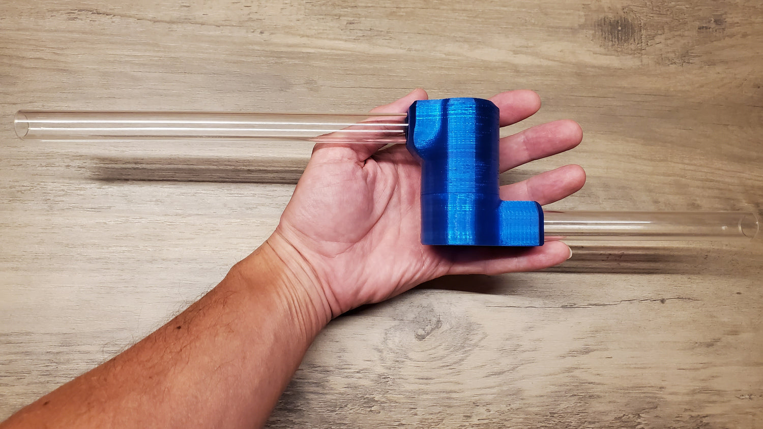 This bubble fogger adapter kit transforms the Smok TFV18 atomizer tank into a rugged and very effective mini fog machine, perfect for making fog filled bubbles in sizes from tiny to very large. The main parts of the adapter are 3d printed from very durable TPU material and the fog and blow tubes are made of clear polycarbonate. The standard blow and fog tubes are 16mm diameter. I include a skinny 9mm fog tube for precision bubble work or tiny bubbles.